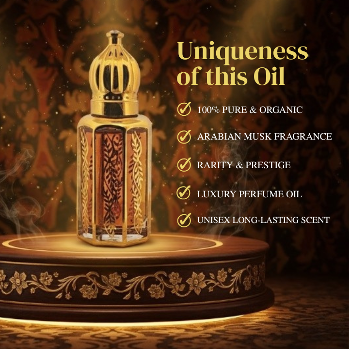 A luxurious blend featuring real Indonesian oud, freshly distilled Kannauj Rose, and a smooth white musk accord. The opening blooms with soft floral rose, followed by a gently spiced heart that warms on the skin. The base settles into a sensual musky-oud finish — elegant, comforting, and beautifully balanced for both men and women.